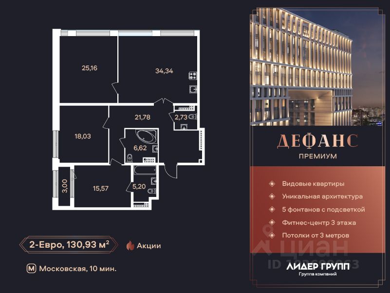 ЖК "Дефанс Премиум". Строительство завершено. Дом получил заключение о соответствии и готовится к вводу! Это проект авторской архитектуры с уникальными форматами квартир в 10 минутах ходьбы от станции метро "Московская". Дом выполнен в виде двух 23-х этажных арок, основания которых объединены единым внутренним пространством с большой парадной лестницей, променадом и большим фонтанным комплексом с подсветкой. В составе проекта построен большой фитнес-центр с бассейнами и зоной СПА. Часть квартир отделена от остальных жилых этажей специальным техническим этажом — это снимает все ограничения по перепланировке. Для части квартир предусмотрены индивидуальные входные группы и дополнительные лифты премиального немецкого бренда Tyssen Krupp (TKE). Фасады, облицованные испанской керамикой и алюминиевые панорамные окна с энергоэффективными стеклами AGС Energy подчеркивают высокий статус дома. На квартиры ЗПИФ и переуступки семейная ипотека не распространяется!