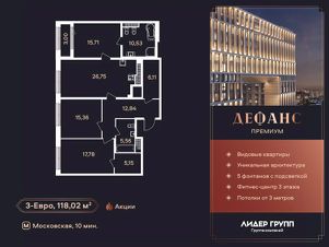 ЖК "Дефанс Премиум". Строительство завершено. Дом получил заключение о соответствии и готовится к вводу! Это проект авторской архитектуры с уникальными форматами квартир в 10 минутах ходьбы от станции метро "Московская". Дом выполнен в виде двух 23-х этажных арок, основания которых объединены единым внутренним пространством с большой парадной лестницей, променадом и большим фонтанным комплексом с подсветкой. В составе проекта построен большой фитнес-центр с бассейнами и зоной СПА. Часть квартир отделена от остальных жилых этажей специальным техническим этажом — это снимает все ограничения по перепланировке. Для части квартир предусмотрены индивидуальные входные группы и дополнительные лифты премиального немецкого бренда Tyssen Krupp (TKE). Фасады, облицованные испанской керамикой и алюминиевые панорамные окна с энергоэффективными стеклами AGС Energy подчеркивают высокий статус дома. На квартиры ЗПИФ и переуступки семейная ипотека не распространяется!