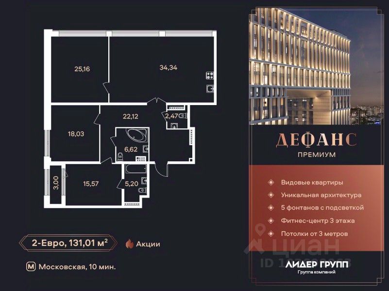ЖК "Дефанс Премиум". Строительство завершено. Дом получил заключение о соответствии и готовится к вводу! Это проект авторской архитектуры с уникальными форматами квартир в 10 минутах ходьбы от станции метро "Московская". Дом выполнен в виде двух 23-х этажных арок, основания которых объединены единым внутренним пространством с большой парадной лестницей, променадом и большим фонтанным комплексом с подсветкой. В составе проекта построен большой фитнес-центр с бассейнами и зоной СПА. Часть квартир отделена от остальных жилых этажей специальным техническим этажом — это снимает все ограничения по перепланировке. Для части квартир предусмотрены индивидуальные входные группы и дополнительные лифты премиального немецкого бренда Tyssen Krupp (TKE). Фасады, облицованные испанской керамикой и алюминиевые панорамные окна с энергоэффективными стеклами AGС Energy подчеркивают высокий статус дома. На квартиры ЗПИФ и переуступки семейная ипотека не распространяется!