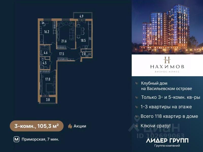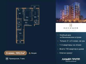 В ЖК "Нахимов" ТОЛЬКО трёх- и пятикомнатные квартиры! Эксклюзивные планировки площадью от 100 до 215 м².