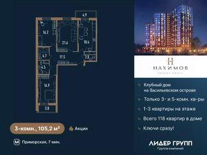 В ЖК "Нахимов" ТОЛЬКО трёх- и пятикомнатные квартиры! Эксклюзивные планировки площадью от 100 до 215 м².