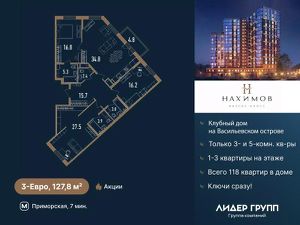 В ЖК "Нахимов" ТОЛЬКО трёх- и пятикомнатные квартиры! Эксклюзивные планировки площадью от 100 до 215 м².