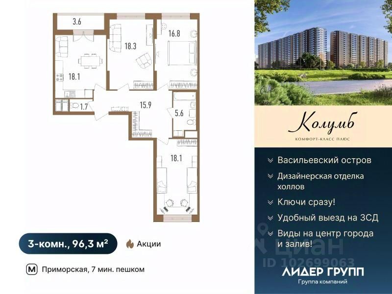 ЖК "Колумб" — готовый дом класса "комфорт+" в составе современного жилого квартала на намывных территориях Васильевского острова. Это безопасная среда: охраняемая территория и видеонаблюдение обеспечивают спокойствие жителей. А благодаря близости к станции метро "Приморская" вы всегда будете на связи с городом.
