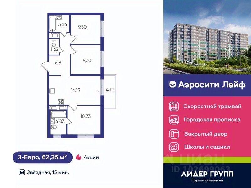В ЖК Аэросити Life запроектировано 491 квартир с полной отделкой более 2/3 из которых планировки семейного формата: одно двух и трехкомнатные. В секциях от 7 до 11 квартир на этаже, среди которых особое место занимают семейные трехкомнатные евроформата с просторными кухнямигостиными и двумя полноценными ванными комнатами, одна из которых с естественным светом. В большинстве квартир предусмотрены функциональные балконы или лоджии площадью более 4х квадратных метров с панорамным остеклением.