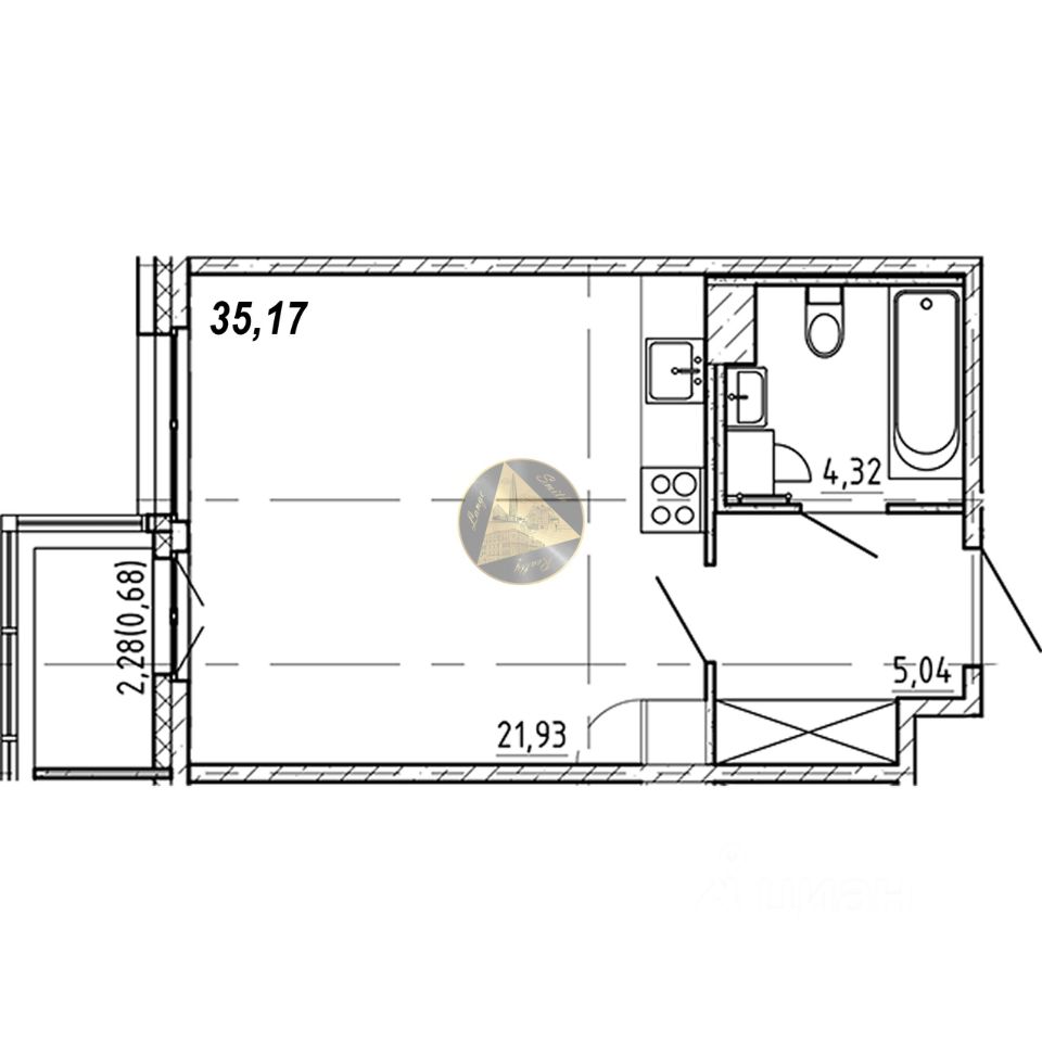 Квартира-студия находится на 4/9 этаже. Общая площадь квартиры 35.17 м2.