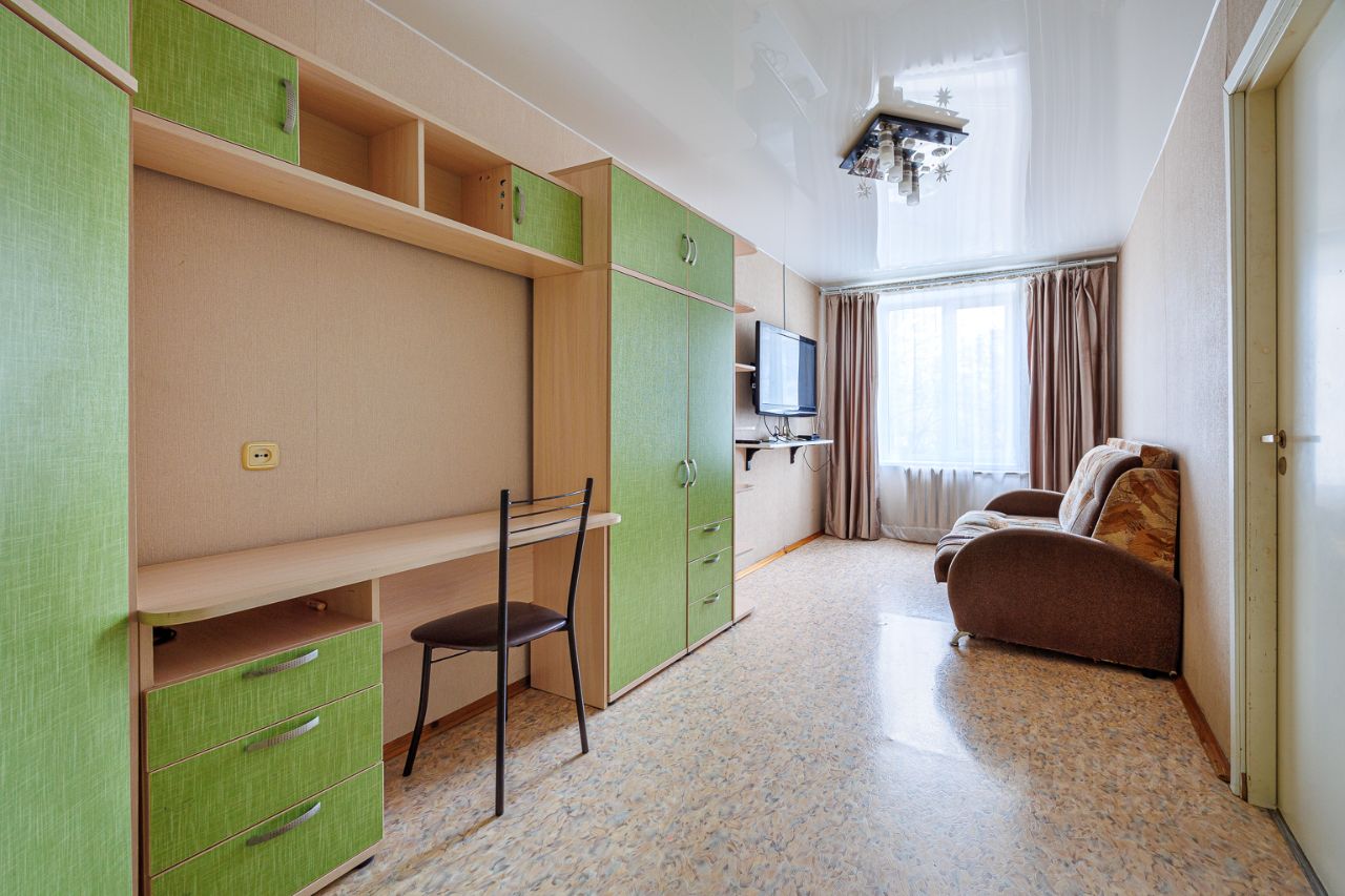 Состояние квартиры простое, можно сразу заехать и жить или же начать делать ремонт на свой вкус. На полу линолеум, на стенах обои, потолок натяжной.