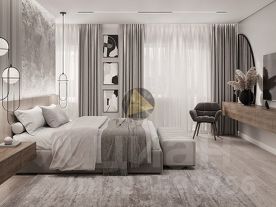 Мастер-спальня 18.56 м2 с отдельным санузлом 4.07 и гардеробной 3.67 м2.