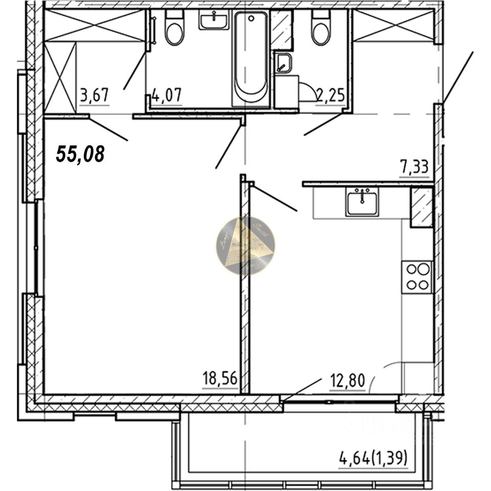 Лоджия 4.64 м2.