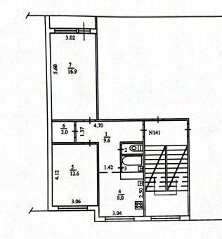 Общая площадь 52.1 кв. М., просторные комнаты по 16.9 и 12.6, что позволяет комфортно разместиться семье.