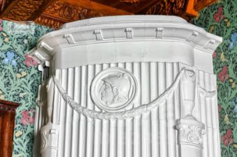 Арт. 124291132 Представьте себе квартиру, погружающую вас в атмосферу ушедших эпох, где бережно сохранены оригинальные интерьеры. Деревянный потолок украшен искусной резьбой и орнаментами, создающими впечатление уютного и одновременно величественного пространства. Полуколонны с изящными капителями ионического ордера добавляют квартире элегантности и благородства. Они служат не только украшением, но и структурируют пространство, создавая гармоничный ритм помещения.Особое внимание привлекает печь с полукруглыми пилонами, которая представляют собой настоящие произведения керамического искусства.