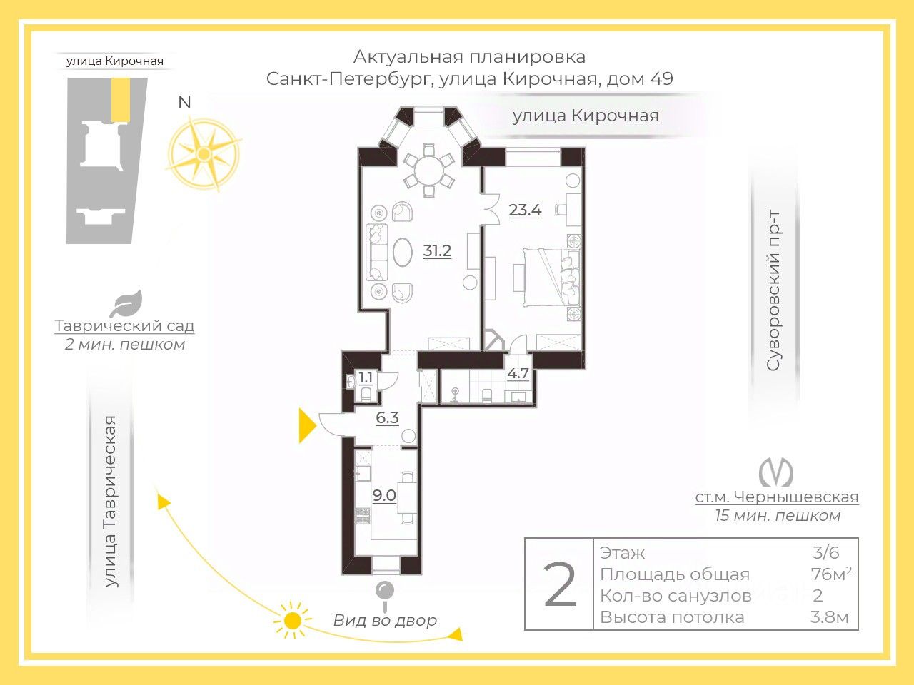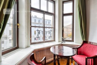 Квартира в лучших традициях зодчества конца 19-го века, с высокими потолками, большими окнами и эркером, откуда открывается красивый вид на Таврический сад.