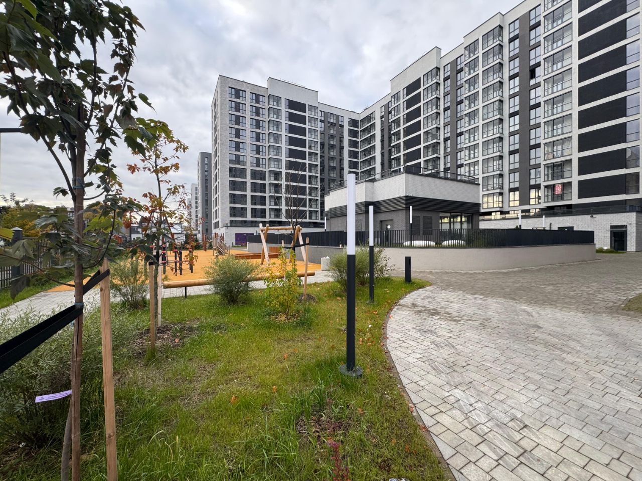 В самом комплексе есть коворкинг, современное благоустройство и озеленение внутренней территории, включающее детские площадки и декоративное освещение. Есть подземный паркинг, территория дома закрыта.