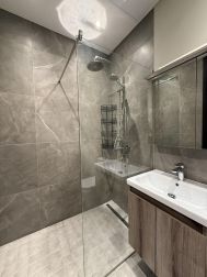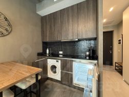 Есть вся необходимая мебель и техника- холодильник Bosch, варочная панель Bosch, вытяжка Bosch, стиральная машина Zanussi, кондиционер, чайник. Керамогранит с подогревом в санузле.