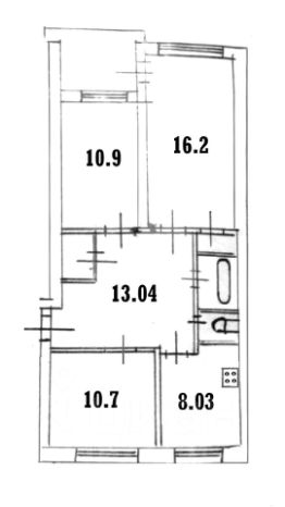 Общая площадь составляет 67,4 кв.м, жилая 37,8 кв.м, комнаты-10,9 + 16,2 + 10,7 кв.м, кухня 8,03 кв.м, прихожая 13,04 кв.м, кладовая, большая лоджия 2,6 кв.м. Планировка прилагается.