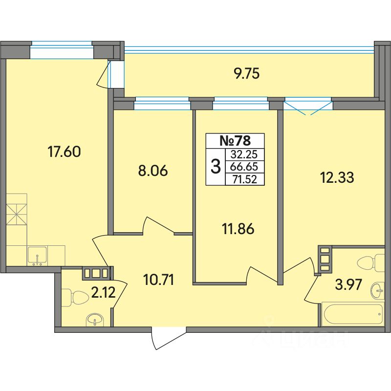 Продаётся 3-комнатная квартира в строящемся доме (Корпус 1), срок сдачи: IV-кв. 2026, общей площадью 71.52 кв.м., на 8 этаже. Жилой комплекс "Рождественский квартал" представляет собой проект квартальной застройки, расположенный во Всеволожском районе Ленобласти, в дер. Скотное. Это комплексно сформированная по современным стандартам застройка с центральными коммуникациями и собственной развитой инфраструктурой.