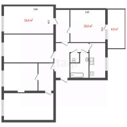 Общая площадь 106 м2, продаются комнаты 20/85 (20 м2) и 16/85 (16.6 м2) продаются одним лотом, так как одна из комнат по документам проходная, а по факту изолированная.