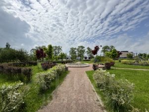 У дома располагается сквер с фонтаном , где можно прогуляться с коляской или вечером посидеть попить кофе )