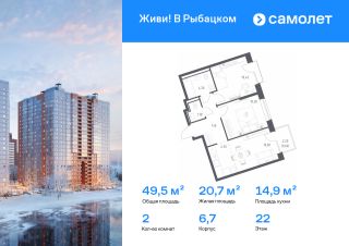 Строим кварталы для жизни с заботой о будущем. Предлагается 2-комнатная квартира комфорт-класса 49,5 кв.м в корпусе 6,7 на 22 этаже, в ЖК "Живи! В Рыбацком"