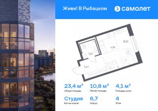 Строим кварталы для жизни с заботой о будущем. Предлагается квартира студия комфорт-класса 23,43 кв.м в корпусе 6,7 на 4 этаже, в ЖК "Живи! В Рыбацком"