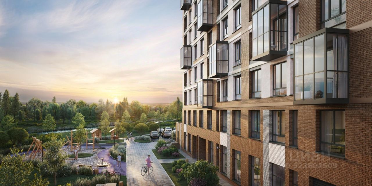 Квартал "Живи! В Рыбацком" в Невском районе Санкт-Петербурга расположен рядом с рекой Славянкой и парком.
