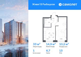 Строим кварталы для жизни с заботой о будущем. Предлагается 1-комнатная квартира комфорт-класса 32,95 кв.м в корпусе 6,7 на 13 этаже, в ЖК "Живи! В Рыбацком"