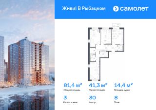 Строим кварталы для жизни с заботой о будущем. Предлагается 3-комнатная квартира комфорт-класса 81,41 кв.м в корпусе 30 на 8 этаже, в ЖК "Живи! В Рыбацком"