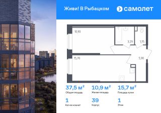 Строим кварталы для жизни с заботой о будущем. Предлагается 1-комнатная квартира комфорт-класса 37,54 кв.м в корпусе 39 на 1 этаже, в ЖК "Живи! В Рыбацком"