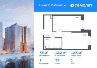 Строим кварталы для жизни с заботой о будущем. Предлагается 1-комнатная квартира комфорт-класса 35,96 кв.м в корпусе 39 на 1 этаже, в ЖК "Живи! В Рыбацком"