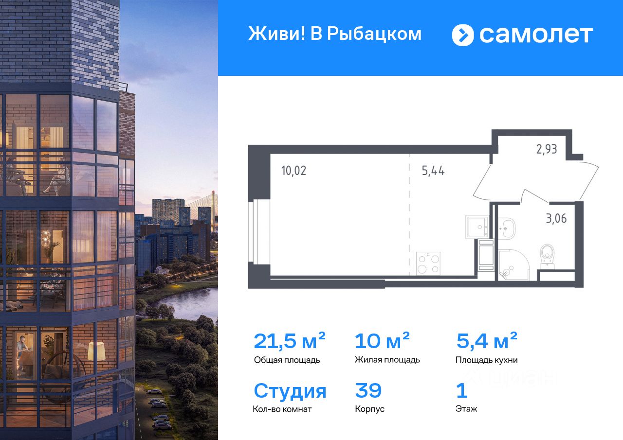 Строим кварталы для жизни с заботой о будущем. Предлагается квартира студия комфорт-класса 21,45 кв.м в корпусе 39 на 1 этаже, в ЖК "Живи! В Рыбацком"