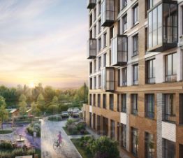 Квартал "Живи! В Рыбацком" в Невском районе Санкт-Петербурга расположен рядом с рекой Славянкой и парком.