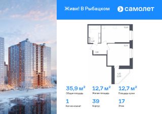 Строим кварталы для жизни с заботой о будущем. Предлагается 1-комнатная квартира комфорт-класса 35,86 кв.м в корпусе 39 на 17 этаже, в ЖК "Живи! В Рыбацком"