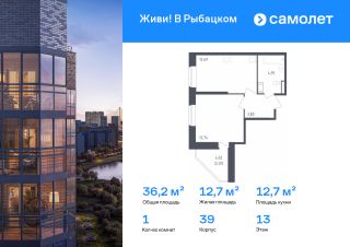 Строим кварталы для жизни с заботой о будущем. Предлагается 1-комнатная квартира комфорт-класса 36,19 кв.м в корпусе 39 на 13 этаже, в ЖК "Живи! В Рыбацком"