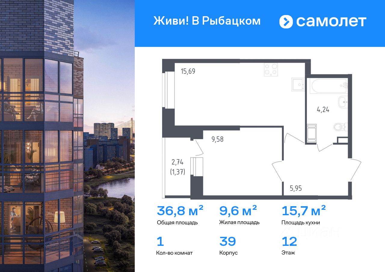 Строим кварталы для жизни с заботой о будущем. Предлагается 1-комнатная квартира комфорт-класса 36,83 кв.м в корпусе 39 на 12 этаже, в ЖК "Живи! В Рыбацком"