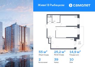 Строим кварталы для жизни с заботой о будущем. Предлагается 2-комнатная квартира комфорт-класса 55 кв.м в корпусе 39 на 10 этаже, в ЖК "Живи! В Рыбацком"