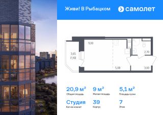 Строим кварталы для жизни с заботой о будущем. Предлагается квартира студия комфорт-класса 20,88 кв.м в корпусе 39 на 7 этаже, в ЖК "Живи! В Рыбацком"