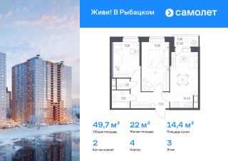 Строим кварталы для жизни с заботой о будущем. Предлагается 2-комнатная квартира комфорт-класса 49,72 кв.м в корпусе 4 на 3 этаже, в ЖК "Живи! В Рыбацком"