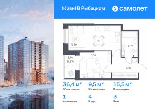 Строим кварталы для жизни с заботой о будущем. Предлагается 1-комнатная квартира комфорт-класса 36,41 кв.м в корпусе 4 на 3 этаже, в ЖК "Живи! В Рыбацком"