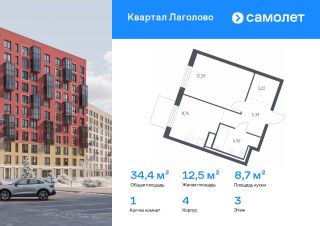Строим кварталы для жизни с заботой о будущем. Предлагается 1-комнатная квартира комфорт-класса 34,41 кв.м в корпусе 4 на 3 этаже, в ЖК "Квартал Лаголово"