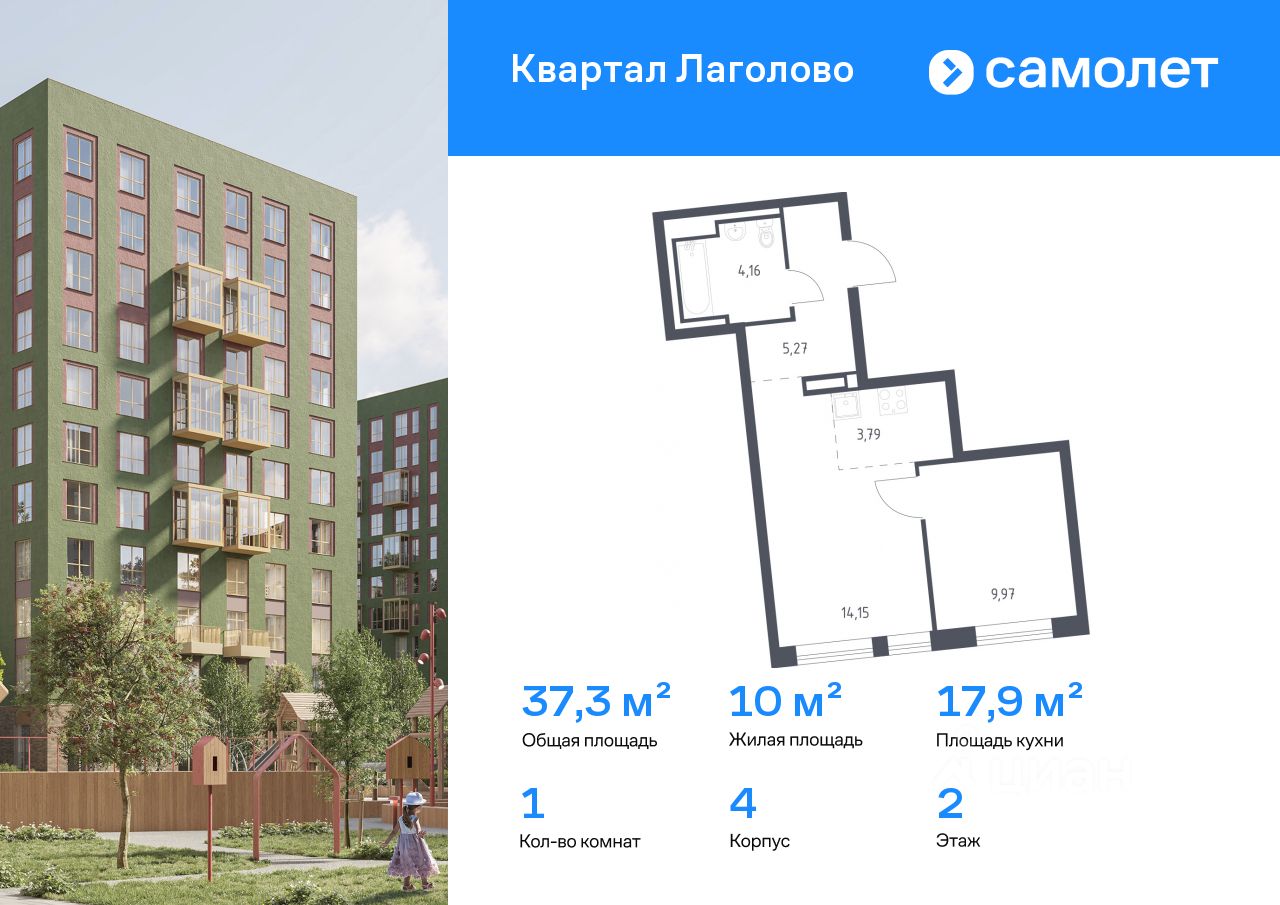 Строим кварталы для жизни с заботой о будущем. Предлагается 1-комнатная квартира комфорт-класса 37,34 кв.м в корпусе 4 на 2 этаже, в ЖК "Квартал Лаголово"