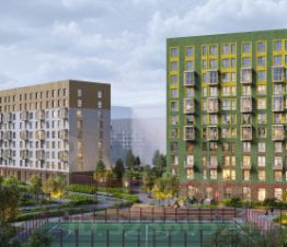 Дома высотой до 11 этажей с панорамными балконами выполнены в скандинавском стиле.