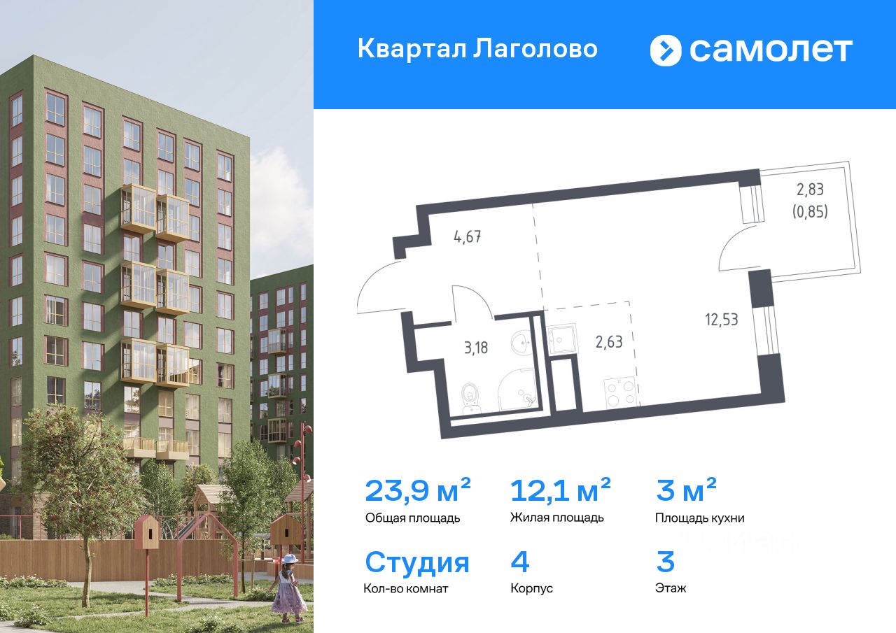 Строим кварталы для жизни с заботой о будущем. Предлагается квартира студия комфорт-класса 23,86 кв.м в корпусе 4 на 3 этаже, в ЖК "Квартал Лаголово"