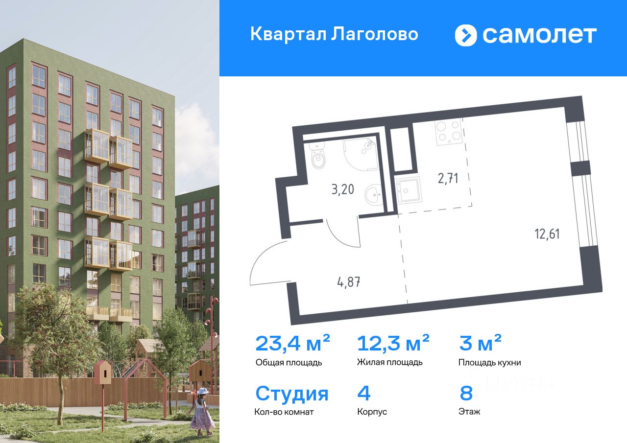 Строим кварталы для жизни с заботой о будущем. Предлагается квартира студия комфорт-класса 23,39 кв.м в корпусе 4 на 8 этаже, в ЖК "Квартал Лаголово"