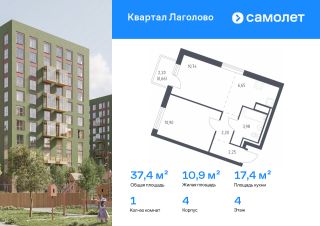 Строим кварталы для жизни с заботой о будущем. Предлагается 1-комнатная квартира комфорт-класса 37,38 кв.м в корпусе 4 на 4 этаже, в ЖК "Квартал Лаголово"