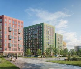 Дома высотой до 11 этажей с панорамными балконами выполнены в скандинавском стиле.