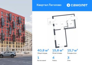 Строим кварталы для жизни с заботой о будущем. Предлагается 1-комнатная квартира комфорт-класса 40,8 кв.м в корпусе 4 на 3 этаже, в ЖК "Квартал Лаголово"