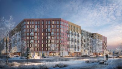 Дома высотой до 11 этажей с панорамными балконами выполнены в скандинавском стиле.