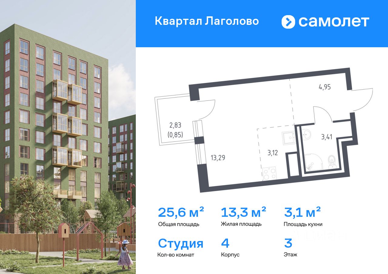 Строим кварталы для жизни с заботой о будущем. Предлагается квартира студия комфорт-класса 25,62 кв.м в корпусе 4 на 3 этаже, в ЖК "Квартал Лаголово"
