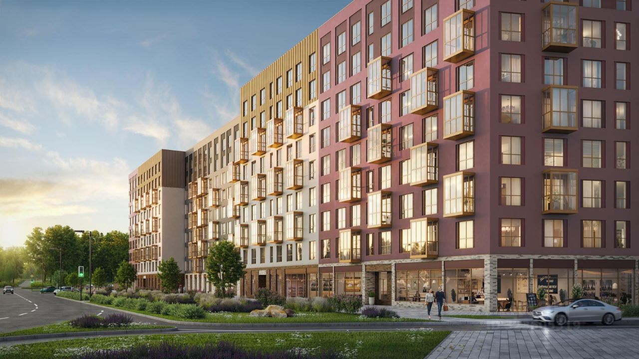 Дома высотой до 11 этажей с панорамными балконами выполнены в скандинавском стиле.