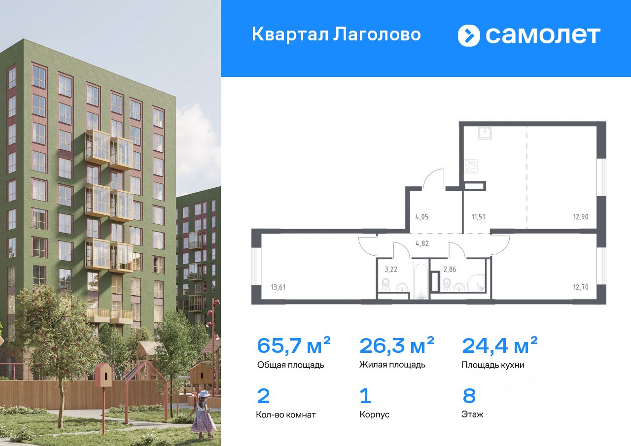 Строим кварталы для жизни с заботой о будущем. Предлагается 2-комнатная квартира комфорт-класса 65,67 кв.м в корпусе 1 на 8 этаже, в ЖК "Квартал Лаголово"