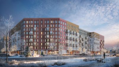 Дома высотой до 11 этажей с панорамными балконами выполнены в скандинавском стиле.